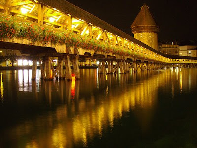 El puente fue construido en el siglo XIV con el propósito de controlar el acceso y salida a Lucerna. Estaba hecho íntegramente de madera y aun conservaba algunos de los frescos en los paneles de madera de su interior. A los lados brotaban las macetas repletan de geranios que otorgaban un aire elegante y embriagador al puente. Mathieu se asomó por un costado y vió un cisne bailando elegantemente con el reflejo de la luna sobre el río Reuss.